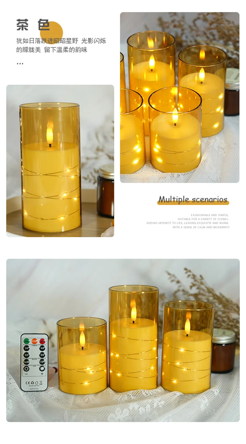 Product name: 3-Pack Flameless LED Candle Gold Gray Transparent Acrylic LED Lamp Electronic Candle for Christmas Halloween Wedding Home Decoration