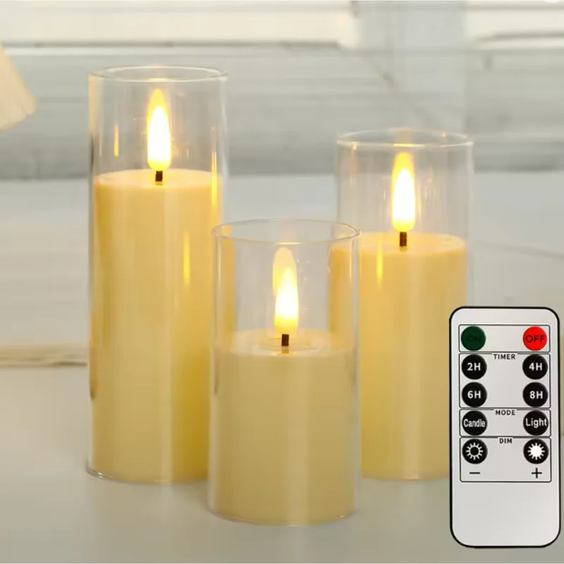 3-Pack Flameless LED Candle Gold Gray Transparent Acrylic LED Lamp Electronic Candle for Christmas Halloween Wedding Home Decor