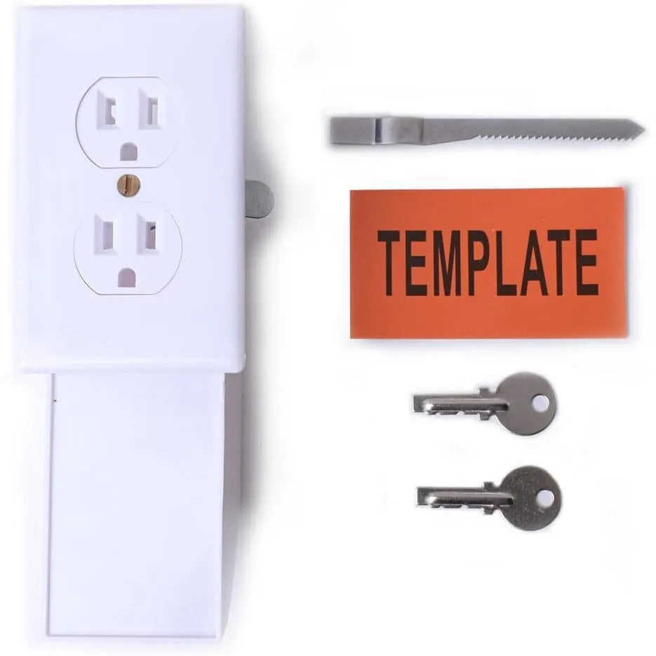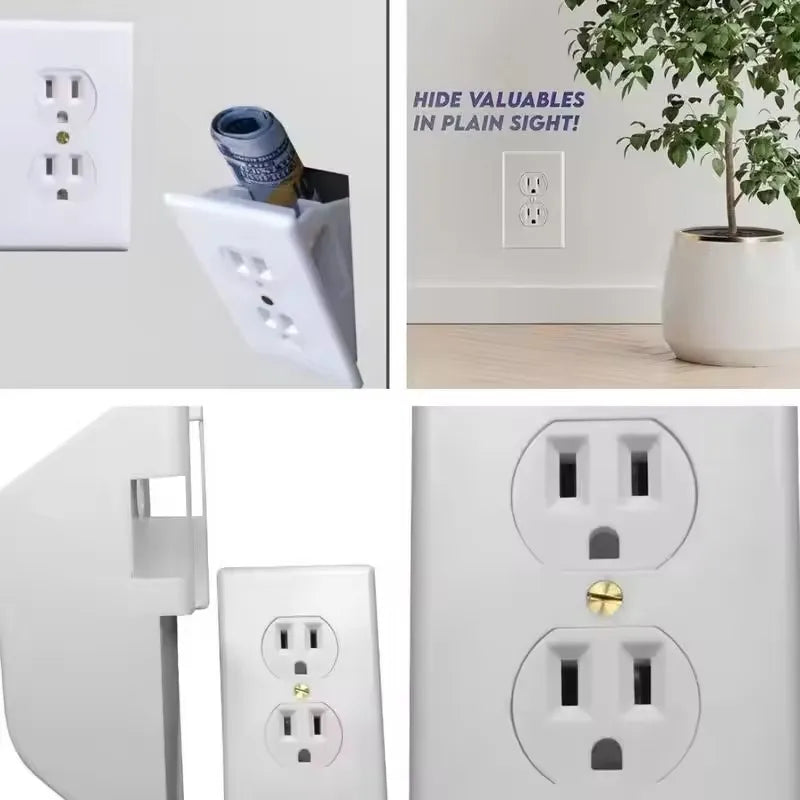 --The Outlet Safe is a cleverly designed wall socket storage solution that securely hides valuables like cash, keys, and credit cards in plain sight, ensuring peace of mind for your home security needs.